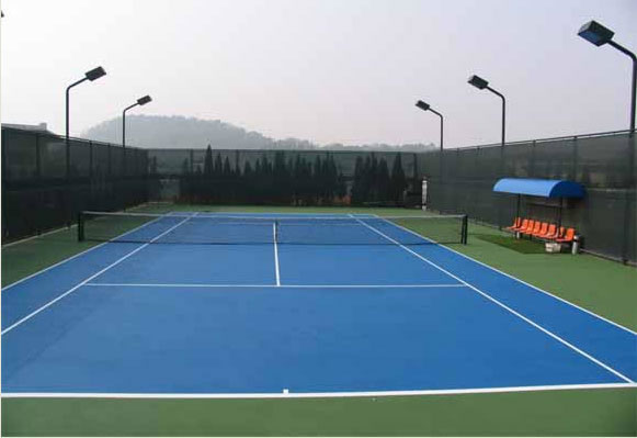 網(wǎng)球場(網(wǎng)球場地/網(wǎng)球場建設(shè)/丙烯酸網(wǎng)球場地/硬地丙烯酸網(wǎng)球場/彈性丙烯酸網(wǎng)球場/網(wǎng)球場地)是一個長方形場地,長36.58 米,寬18.29 米。球場四周用4米高圍網(wǎng)圍住,方便揀球。球場燈光宜采用8盞1000瓦燈具在球場兩側(cè)平均分布,光照度達到350LUX,配備一對網(wǎng)球中網(wǎng)柱,網(wǎng)中央高 0.914 米。推水器和防風(fēng)網(wǎng)都應(yīng)是室外網(wǎng)球場必備的球場設(shè)施。 目前流行的硬地網(wǎng)球場主要采用丙烯酸涂料。這種涂料可以在瀝青或混凝土底基上使用。根據(jù)硬度及球速不同,可分為硬地和軟墊彈性兩個系列。硬地系列主要構(gòu)造為:粘合層、紋理層、表面色彩層和漆線。而軟墊系列則是在粘合層與紋理層之間加入粗、細各一層的橡膠層。丙烯酸涂料的主要優(yōu)點: (1)極具競爭力的性能價格比。 (2)色彩選擇度大,耐磨性強。 (3)無毒,環(huán)保,耐紫外線照射。 (4)維護保養(yǎng)便利,使用壽命長。綜上所述,丙烯酸(硬地丙烯酸/彈性丙烯酸)涂料是目前網(wǎng)球場面層的首選材料。目前的主要品牌有:action-pave Tennislife Nova等。而Action-pave是中國網(wǎng)球協(xié)會授權(quán)特許使用中國網(wǎng)球協(xié)會(CTA)標(biāo)志此外,國外新興一種地面材料--懸浮式拼裝運動地板,因其具有使用時限長,減震性能好(有效吸附90%垂直沖擊力),安全性高,安裝簡便,適合多種運動項目,也越來越受到星級賓館酒店,私人俱樂部,大中學(xué)校等客戶喜愛。