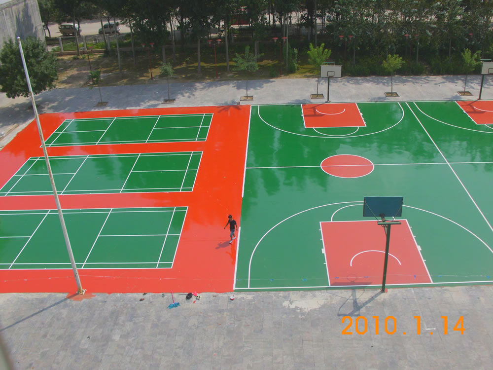 塑膠PU(聚氨酯)球場產(chǎn)品特性: 1、 施工方便,對于水泥混凝土瀝青混凝土木材均具有較好粘接力; 2、 具抗紫外線、耐候性、耐磨性佳、耐老化性佳、使用壽命長; 3、 彈性佳,能減緩腿腳疲勞感,有效降低運動傷害; 4、 止滑性表面處理:采用柔性止滑材料加耐侯面漆噴涂技術(shù),增強磨擦力; 5、 色彩柔和美觀,可多種色彩搭配,視覺效果良好; 6、 表面平坦,在雨后能立即投入使用,提高使用效率; 7、 由于采用高聚體材料,故具防水功能,室內(nèi)外均可使用,適用更廣泛; 8、 保養(yǎng)容易、清潔簡單、維護成本低廉。 適用范圍:室內(nèi)外網(wǎng)球場、籃球場、羽毛球場、排球場、健身房、游樂設(shè)施場地、幼兒園場地、學校體育器械區(qū)、全民健身路徑區(qū)、公園通道、人行天橋、射擊場、體操場等運動場地面。