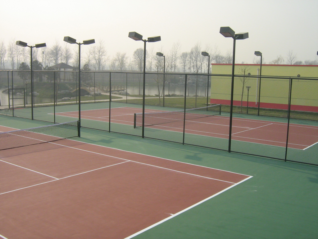 需要安裝照明燈光的網(wǎng)球場(chǎng),除室內(nèi)屋頂燈具分布外,室外網(wǎng)球場(chǎng)上空和端線兩側(cè)不應(yīng)設(shè)燈具。室外燈光球場(chǎng)燈具應(yīng)設(shè)置在兩側(cè)圍網(wǎng)距地面6.0米以上。燈光從場(chǎng)地兩側(cè)朝地面均勻照射。