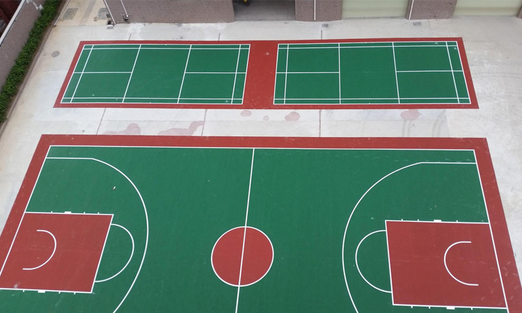 將丙烯酸中涂樹脂加入適量的石英砂,用鏝刀將基均勻涂布一道,增強地面的耐壓及抗沖擊性能及止滑效果.